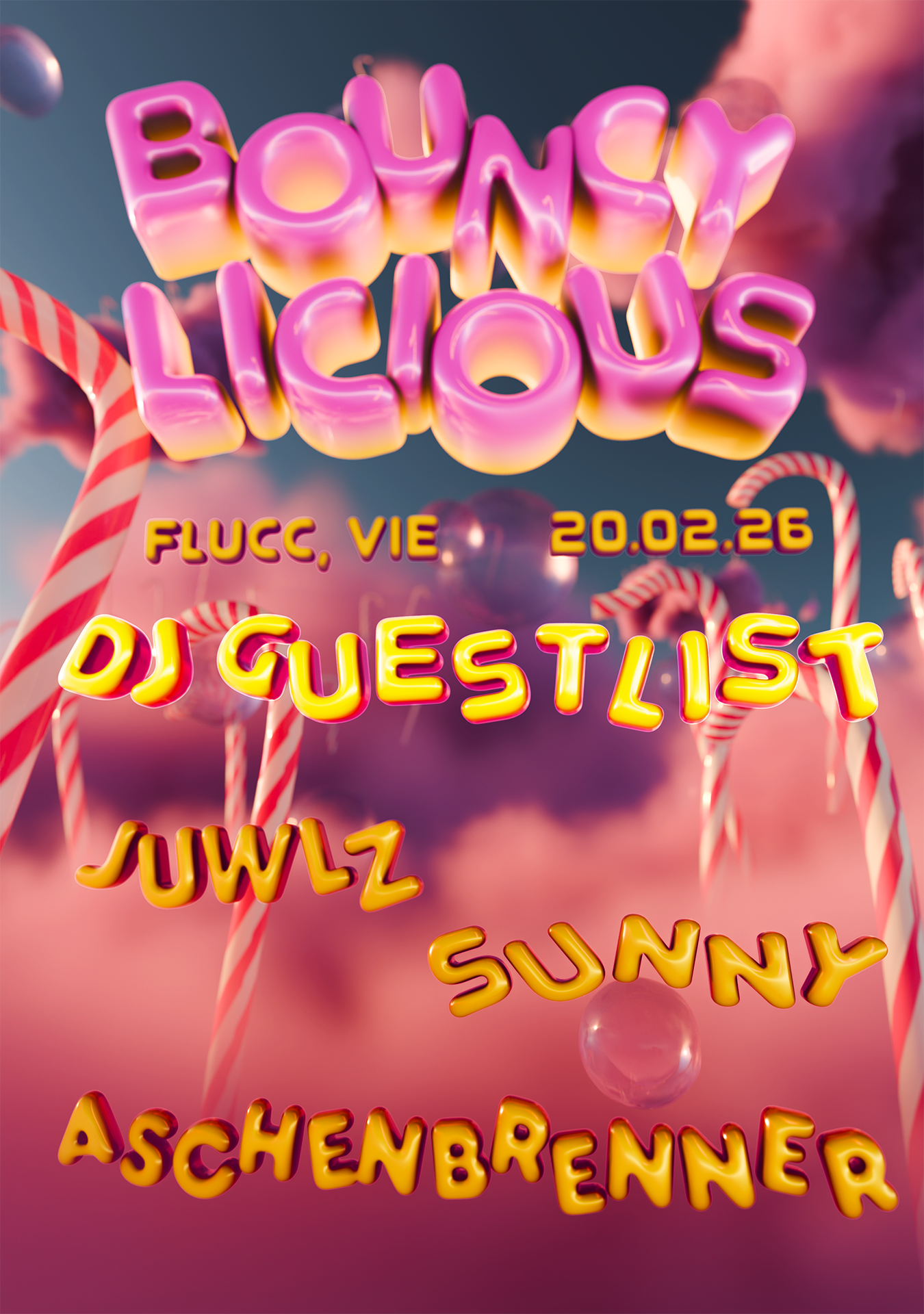 On 20.02.2026 we’re taking over FLUCC again for the next round of BOUNCYLICIOUS – this time with DJ GUESTLIST!