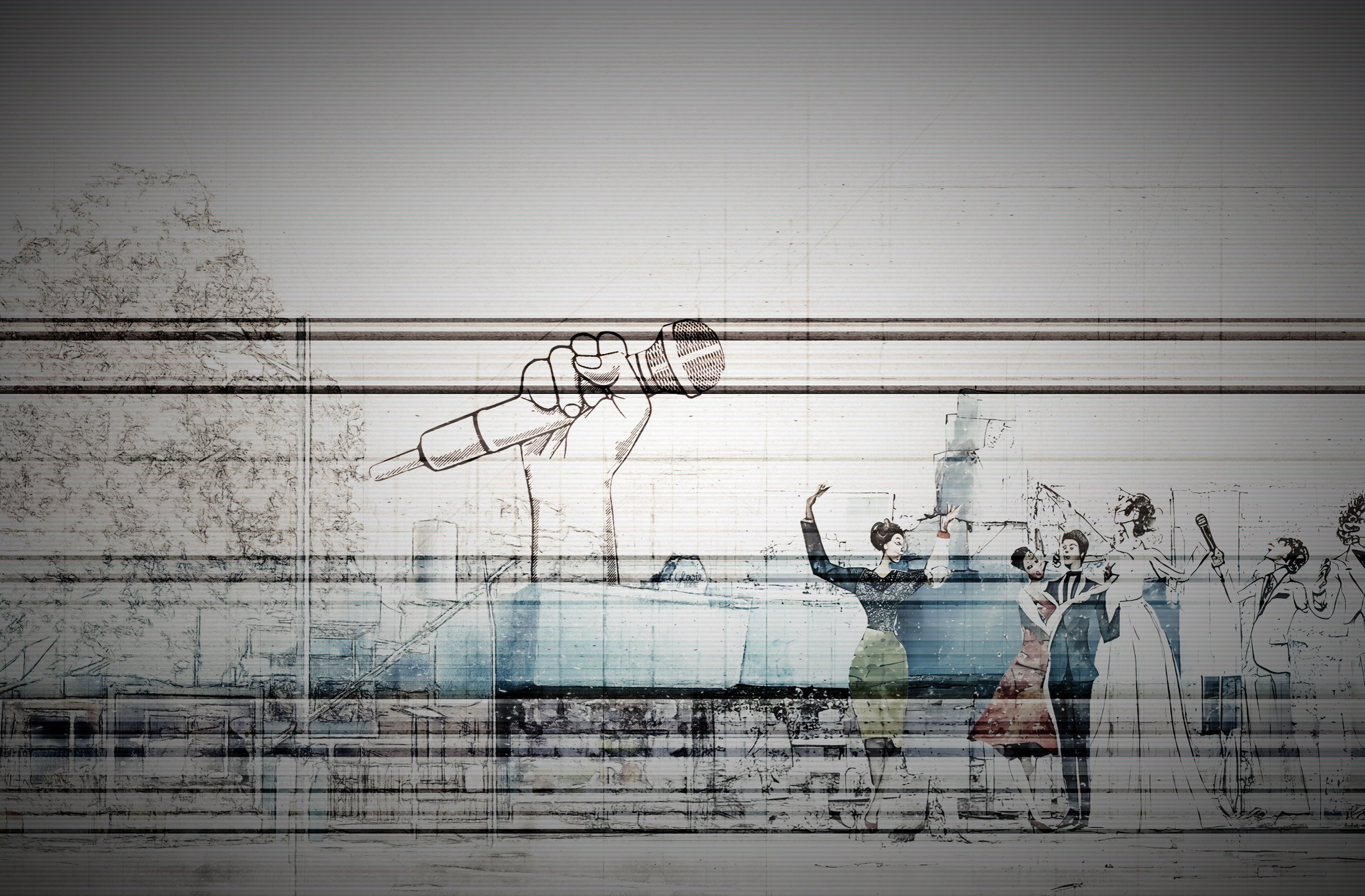 Zieh dein bestes Kleid / deinen besten Anzug an und erhalte ein kostenloses Getränk und singe mit Stil