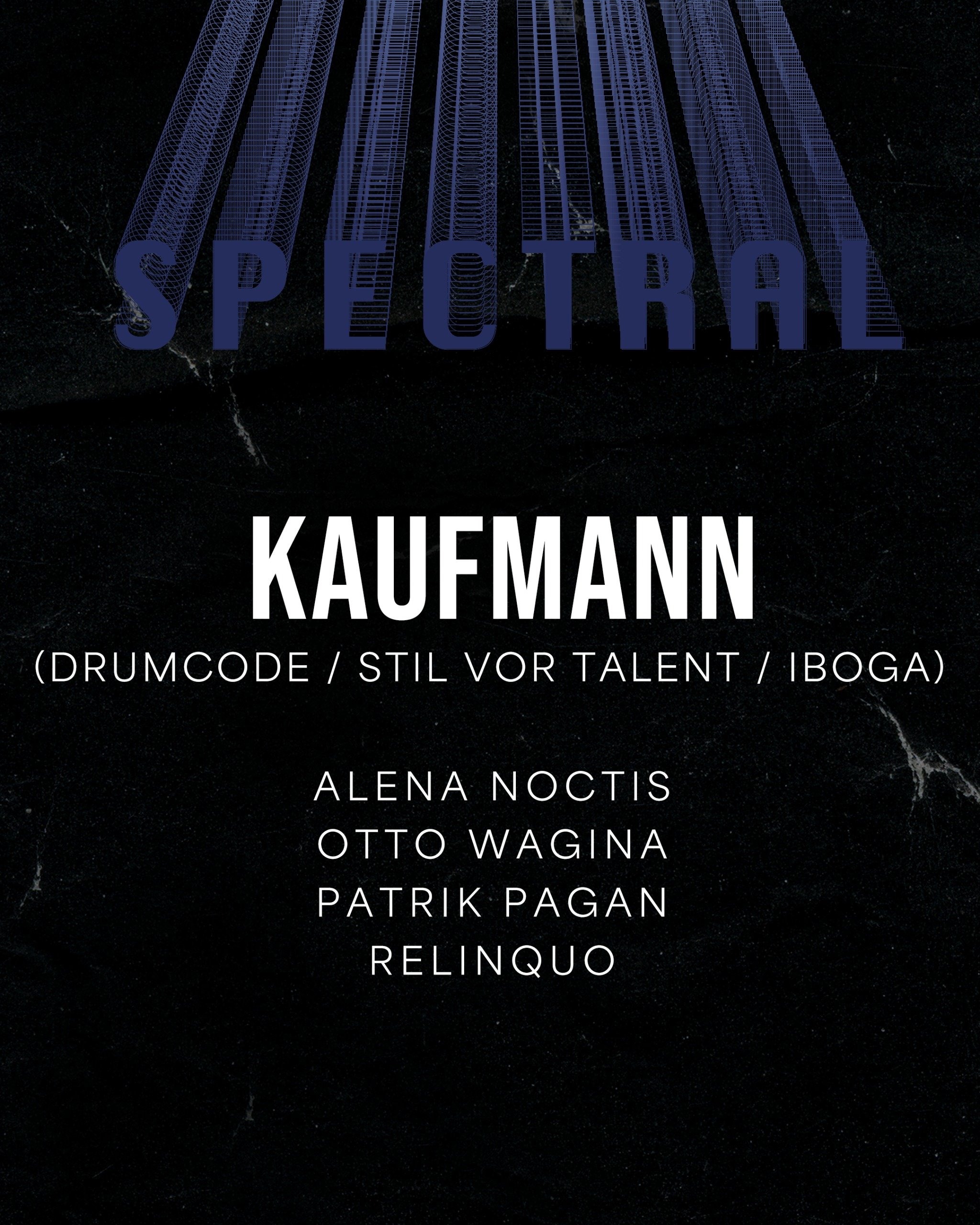 Spectral is back! And this time we are stoked to welcome one of the biggest German underground techno DJs to be headlining our upcoming event at Flucc: Kaufmann! With her latest Nr. 1 release on Drumcode, past shows at the biggest international festivals and the best global clubs, you can expect nothing less than pure rave energy to be coming for us.
